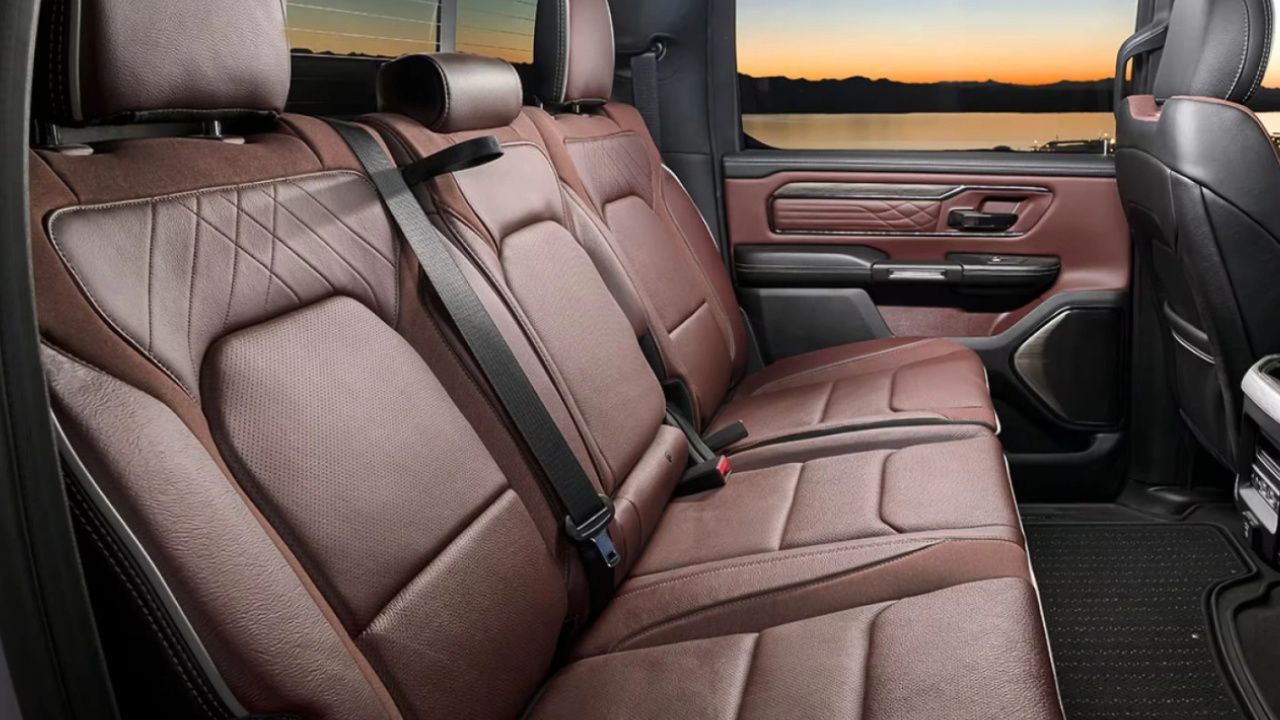 L’intérieur de ce pickup Ram 1500 à vendre pour 2025 est sans conteste le plus luxueux à ce jour. On y retrouve, entre autres, des sièges avant à 12 réglages électriques, une sellerie en cuir et, sur certaines versions, des sièges avant à 24 réglages électriques, chauffants et ventilés, sans oublier les sièges arrière inclinables, entre autres.